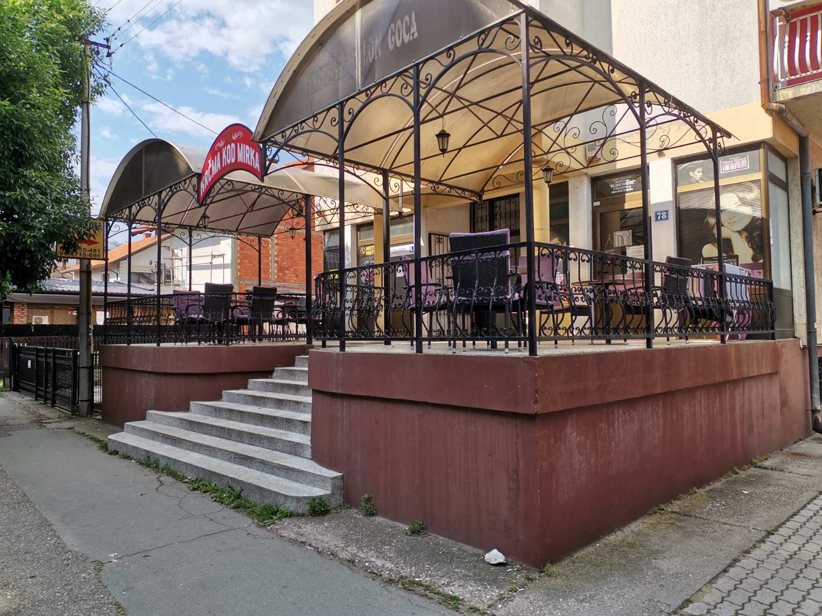 Poslovni prostor posjeduje dva ulaza, prostoriju opremljenu za kuhinju, terasu, dva manja skladišna prostora, u cijenu je uračunat inventar (stolovi, baštenske garniture, kuhinjski elementi, napa, šank, police...)
