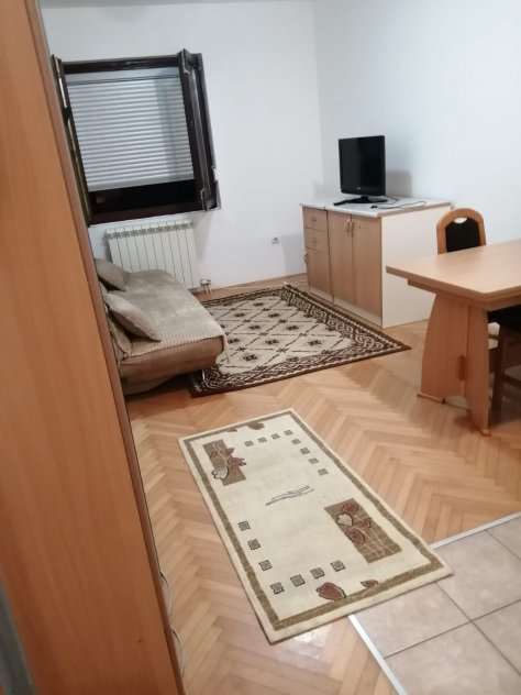 Garsonjera je velicine okvirno 30m2, nalazi se u zgradi sa parkingom i namjestena je jako udobno. Od namjestaja posjeduje, sudje, frizider, sporet sa rernom, mikrotalasnu, TV, usisivac, masinu za pranje vesa, sofa koja se razvlaci, stolice, sto, troklirni ormar, stolic za kafu. Stan je svjeze okrecen, stolice su nove a sofa je dubinski ociscena.