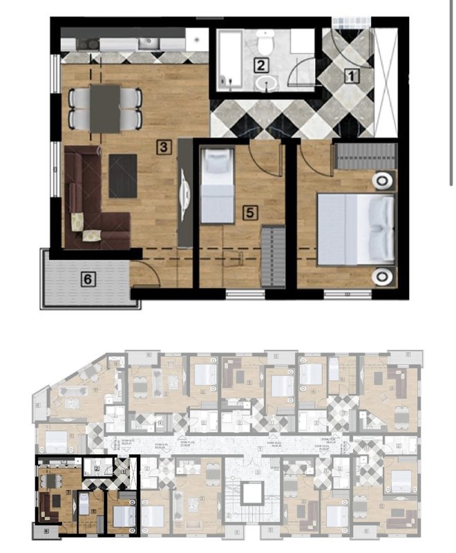 -Od namestaja sadrzi ( kuhinju, trpezarijski sto i stolice, ugaonu, sto, televizor, tv komodu, frizider, sporet, ves masinu sa susilicom, dva samac kreveta, jedan bracni krevet, dva ormana, usisivac)