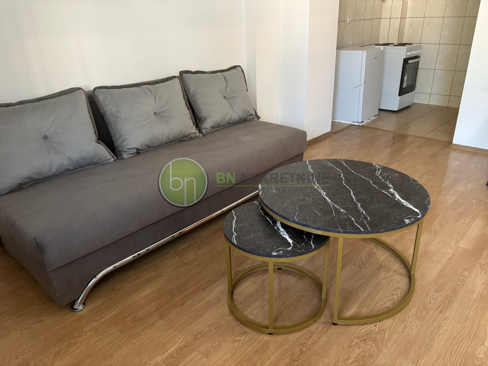 Dnevni boravak i kuhinja: Prostor je otvoren, što stvara savršen ambijent za opuštanje, druženje ili rad od kuće. Savremeni uređaji u kuhinji i stilski dizajn čine ovo mesto savršenim za svakodnevne aktivnosti.