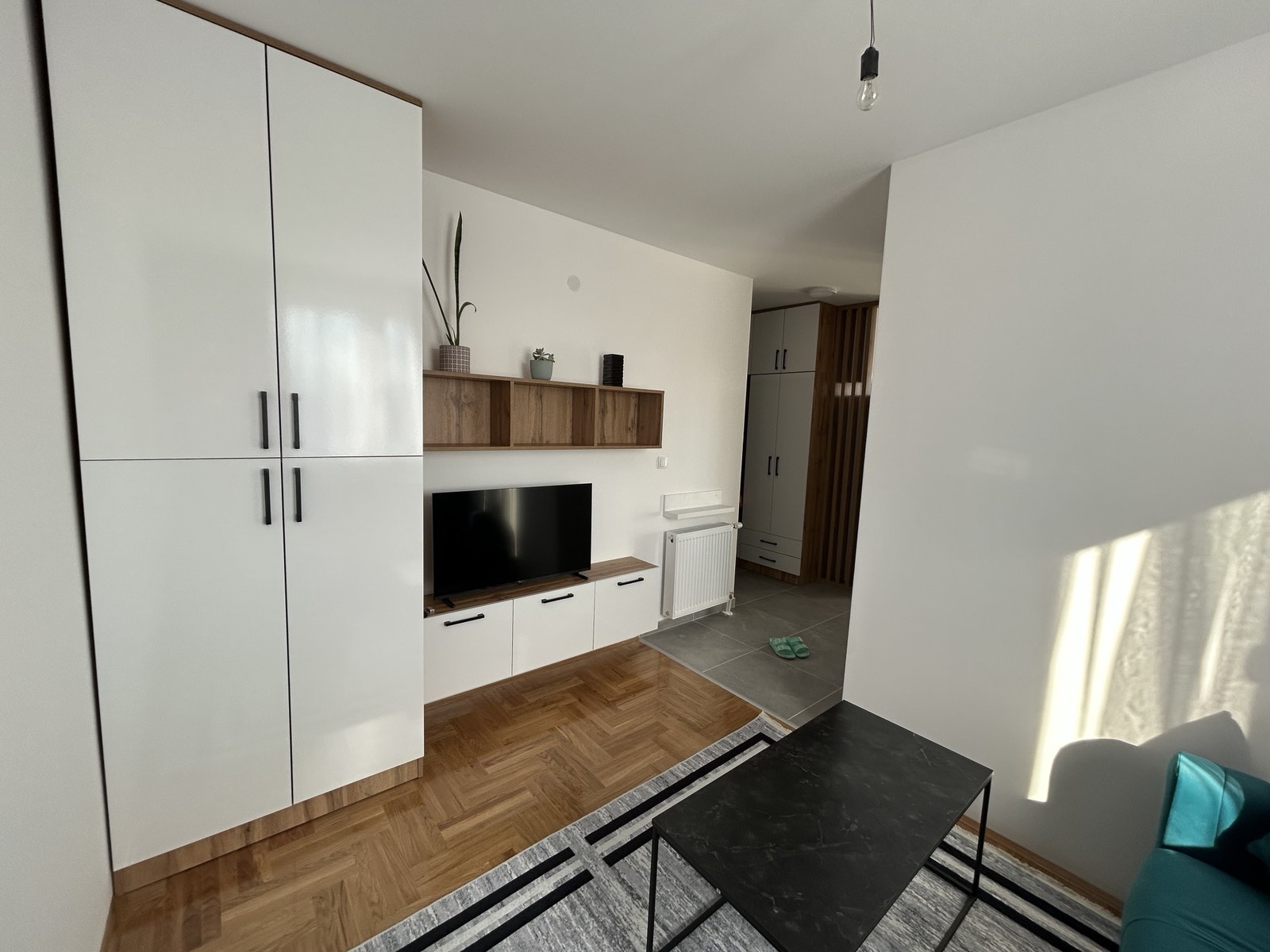 Izdajem nov namješten stan u užem centru grada. Zgrada posjeduje: lift, toplotne pumpe. Stan se nalazi na petom spratu, nije poslednji. Sastoji se od: dnevnog boravka, kuhinje, hodnika, kupatila i balkona. Stan je veoma prozračan i svijetao.