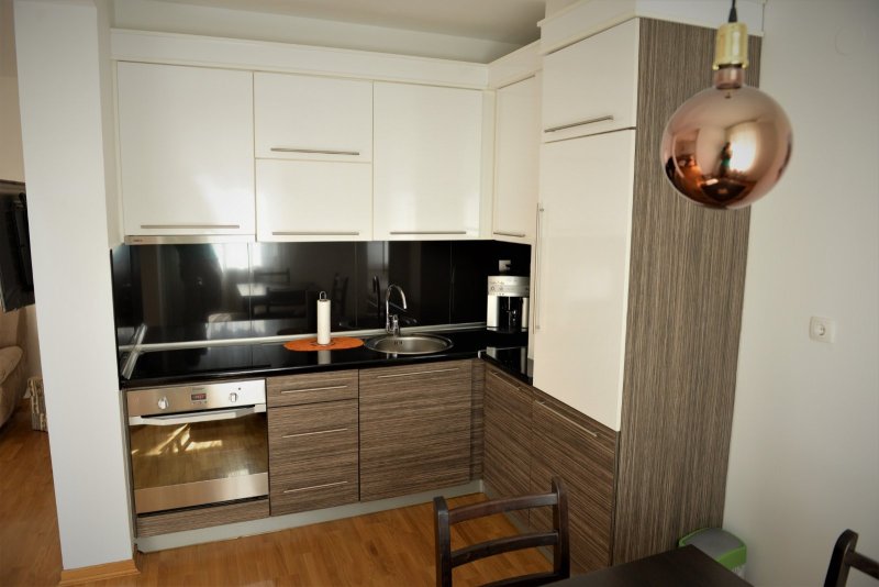 • Opremljenu kuhinju sa svim el.uredjajima i neophodnim posuđem, kao i kafe aparatom – spremno za kuvanje od prvog dana,
