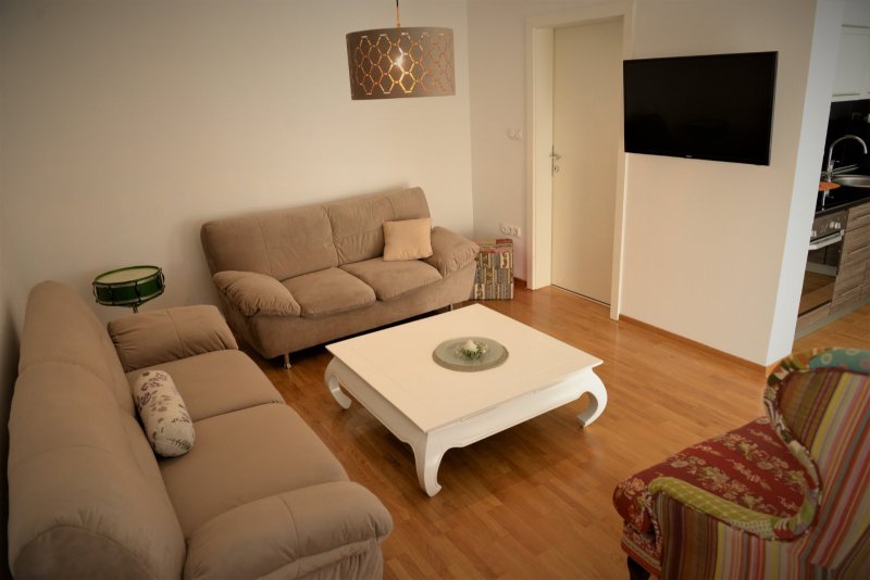 • Prostranu dnevnu sobu sa udobnim garniturama i TV-om,