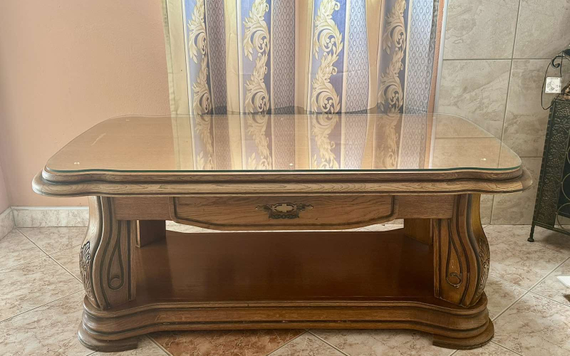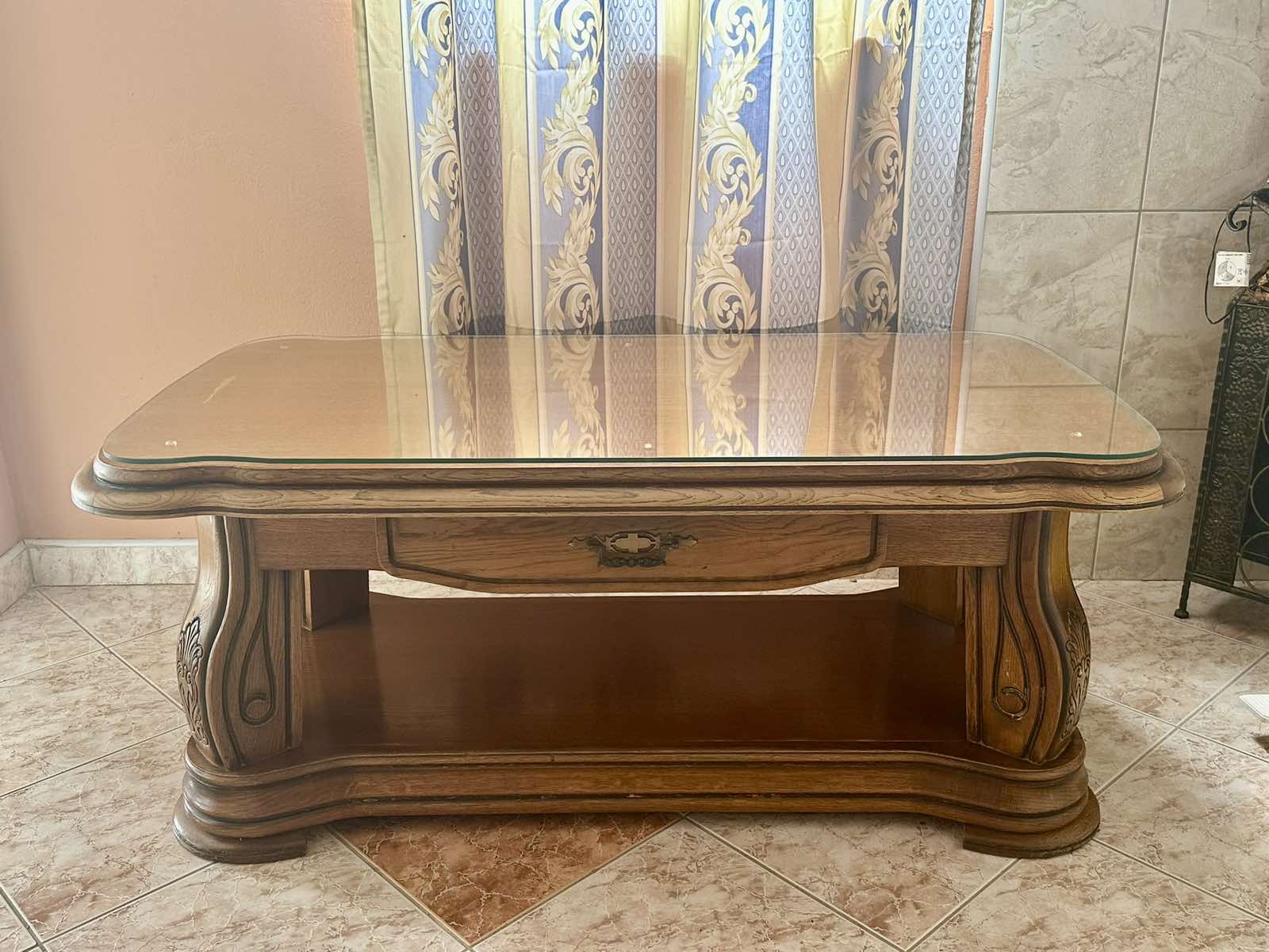 Klub stol Grizzly - Spin Valis, puno masivno drvo hrasta - Hrast P-43 sa staklenim dijelom za površinu.