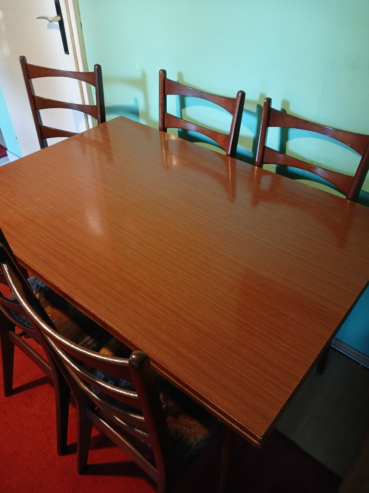 Trpezarijski sto i šest stolica.