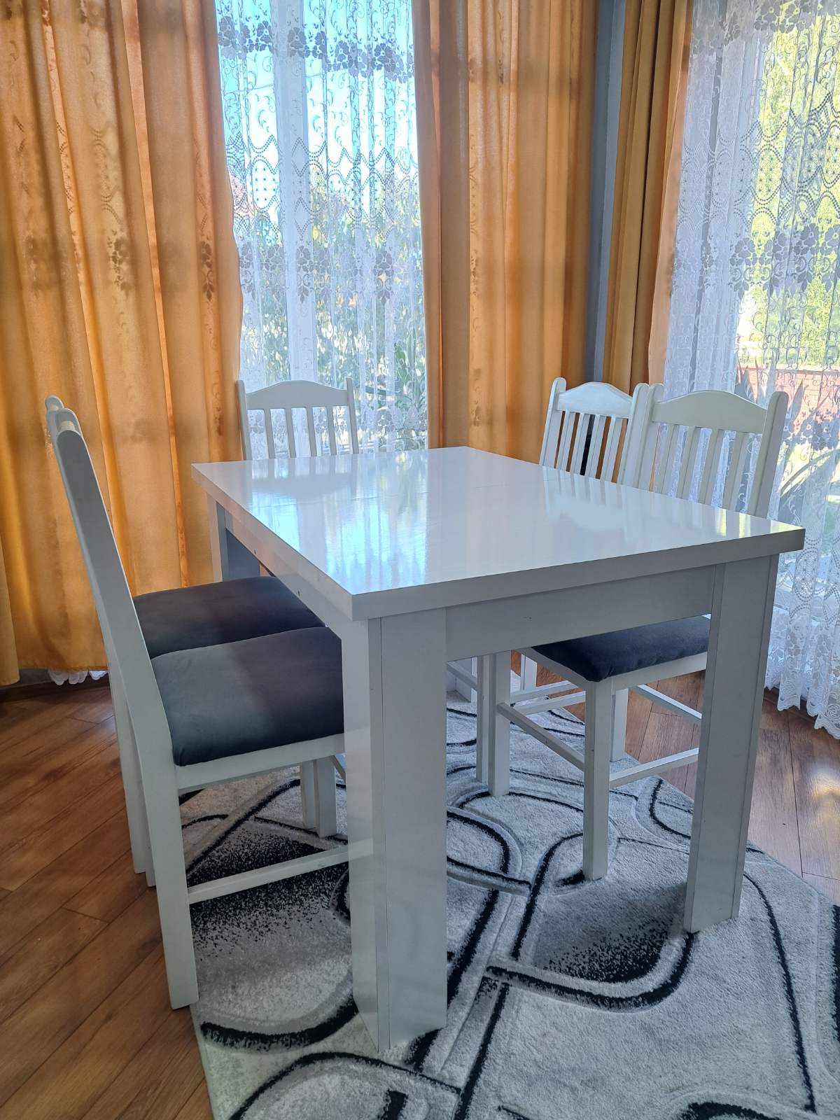 Trpezarijski sto i stolice su u dobrom stanju, kratko korištene, bez oštećenja.