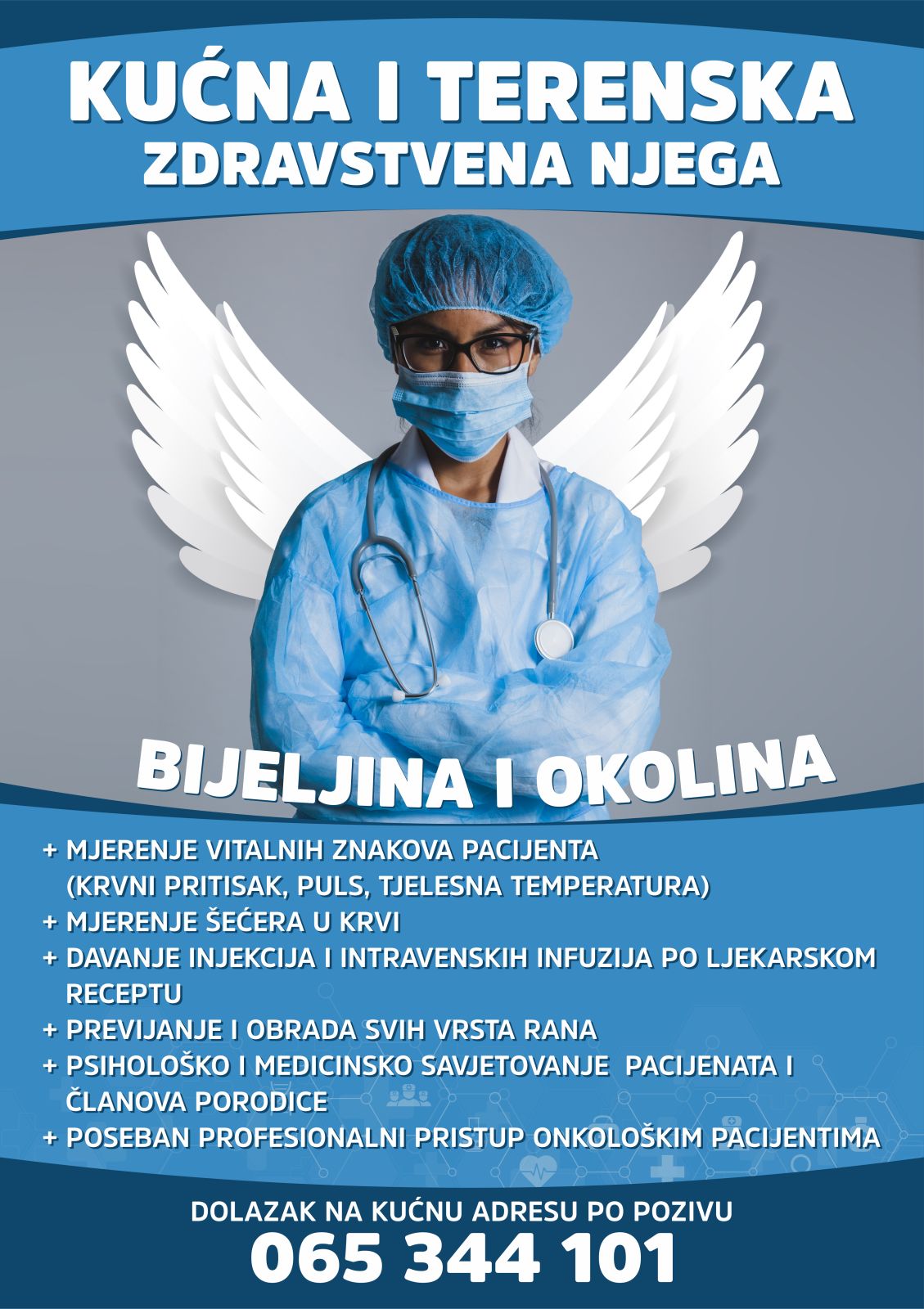 Naš stručni medicinski tim nudi usluge zdravstvene njege,davanje terapije i održavanje toalete pacijenata svih dobi u kućnim uslovima.