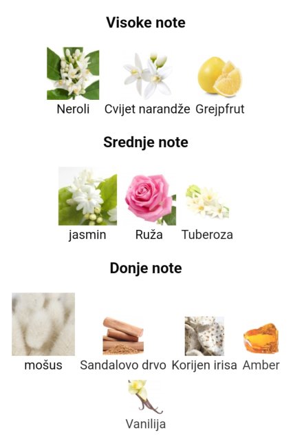 Srednje note: jasmin, ruža, tuberoza