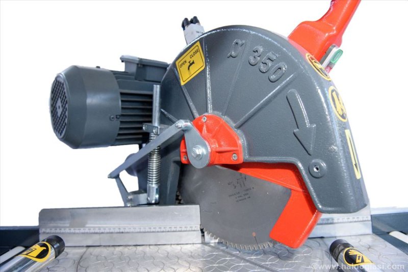 trofazni motor 380 V/50 Hz , snage 2,2 kW, prečnik testere 350 mm , sečenje profila pod uglovima po izboru korisnika