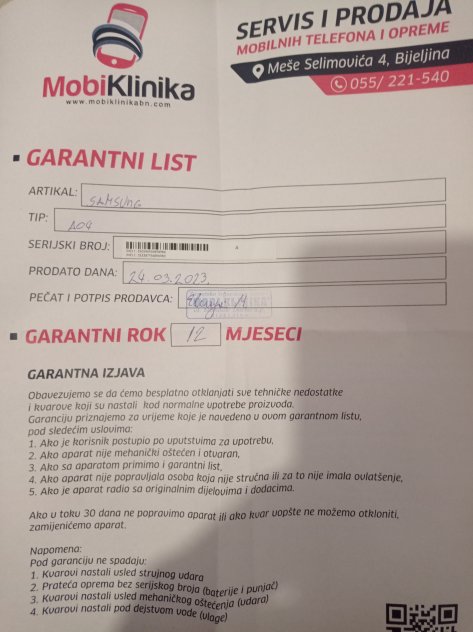Telefon kupljen pre par dana u mobi klinika u bijeljini ne otpakovan. Boja bijela. Garancija 12 mjeseci. Cijena je bila 325 km. Kontakt telefon 065337555 cijena je 250km