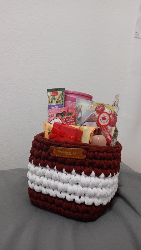 Ukoliko želite da nekoga obradujete, korpicu možete poručiti i kao formiran poklon paket (kao na slici). Sadržaj paketa se može dogovoriti prema vašim željama i budžetu (kozmetika, slatkiši, kafa, piće...). Idealno za rođendane, slave, Dan žena ili kao znak pažnje.