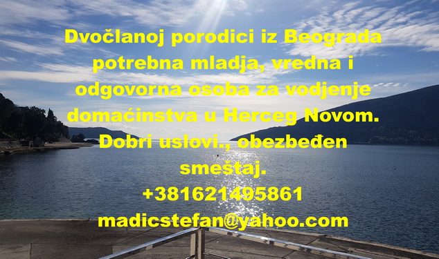 Dvočlanoj porodici iz Beograda potrebna mladja, vredna i odgovorna osoba za vodjenje domaćinstva u Herceg Novom.