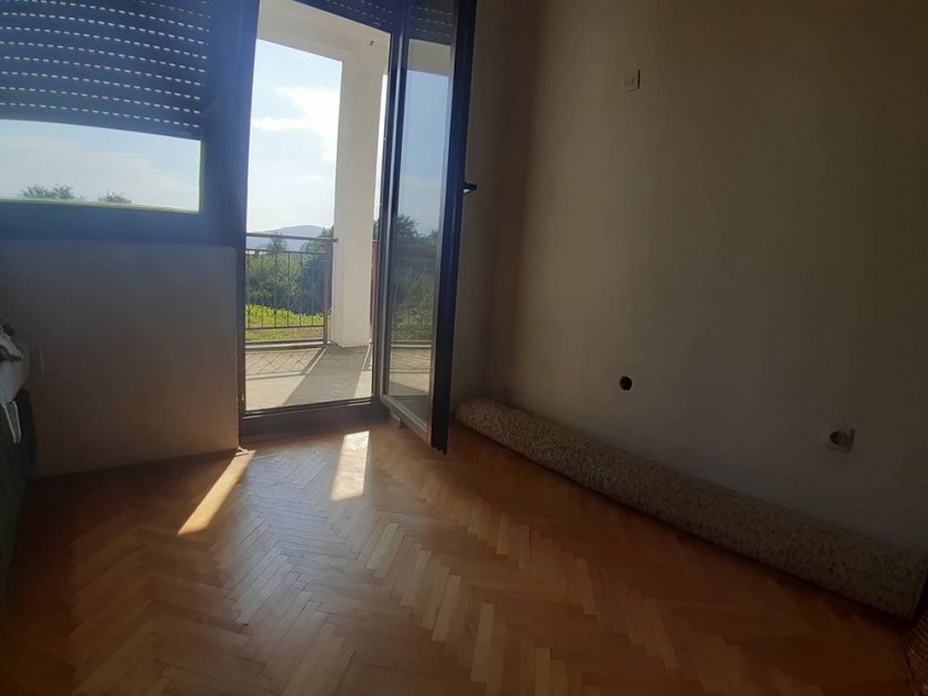 U prizemlju kuće je kuhinja sa trpezarijom, dnevna soba, balkon i hodnik.