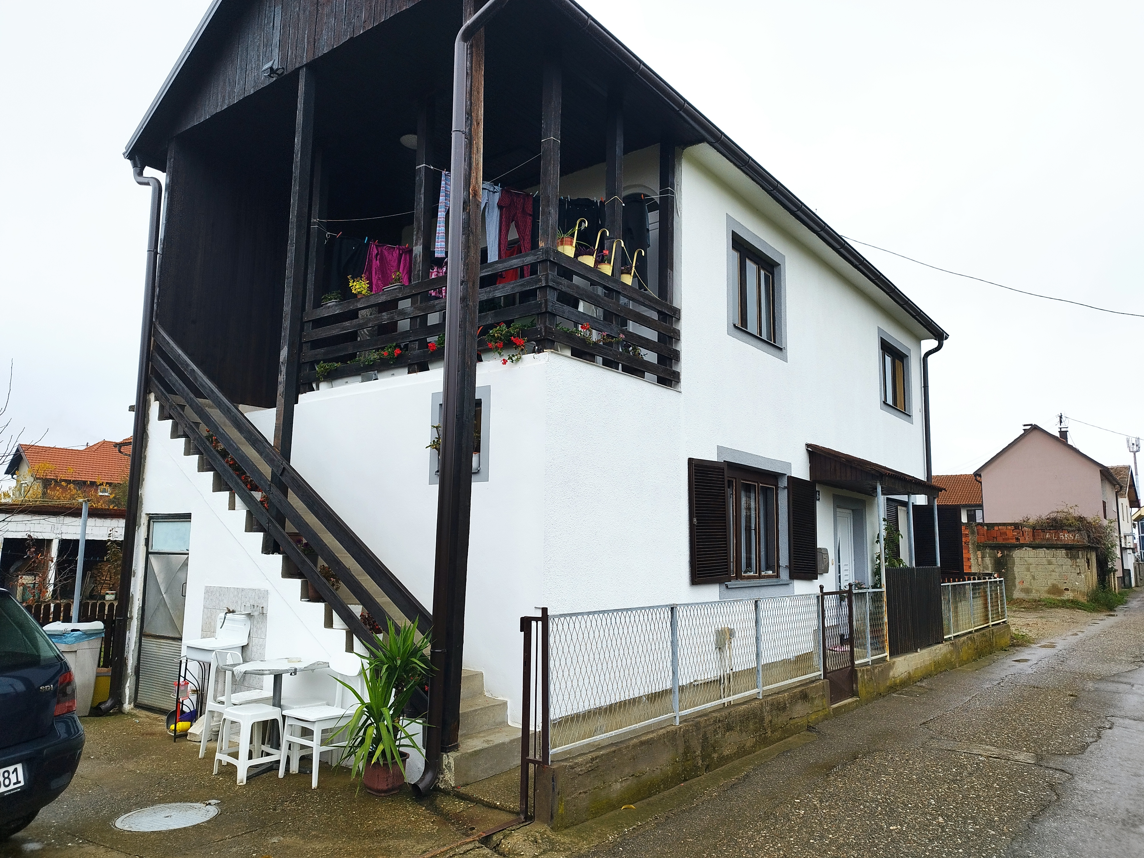 Stepenište je vanjsko za sobe na spratu, grijanje na drva, ima placa pored kuće.