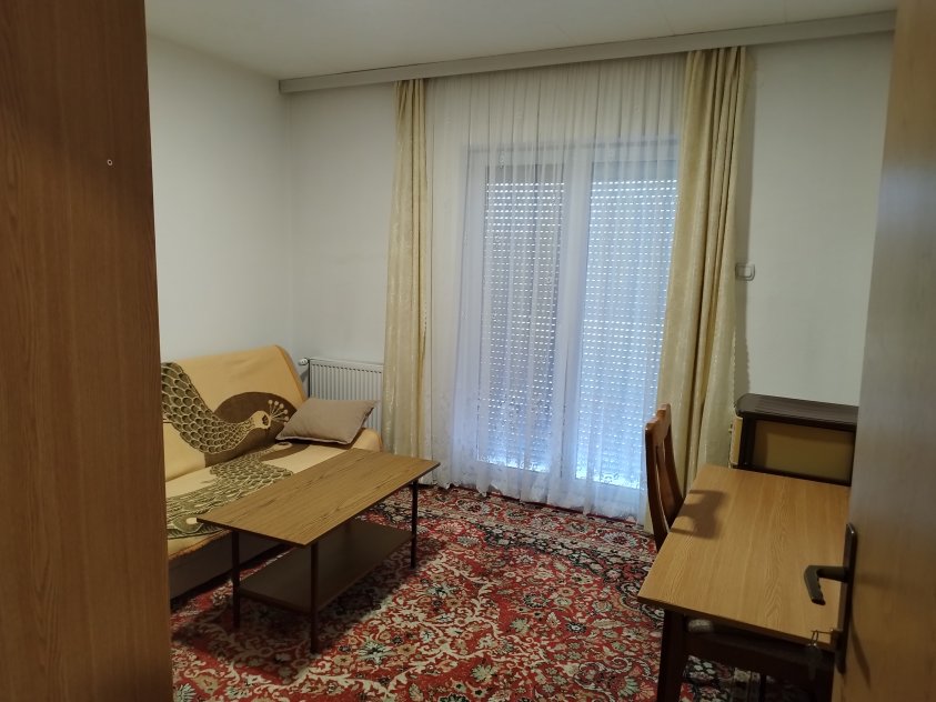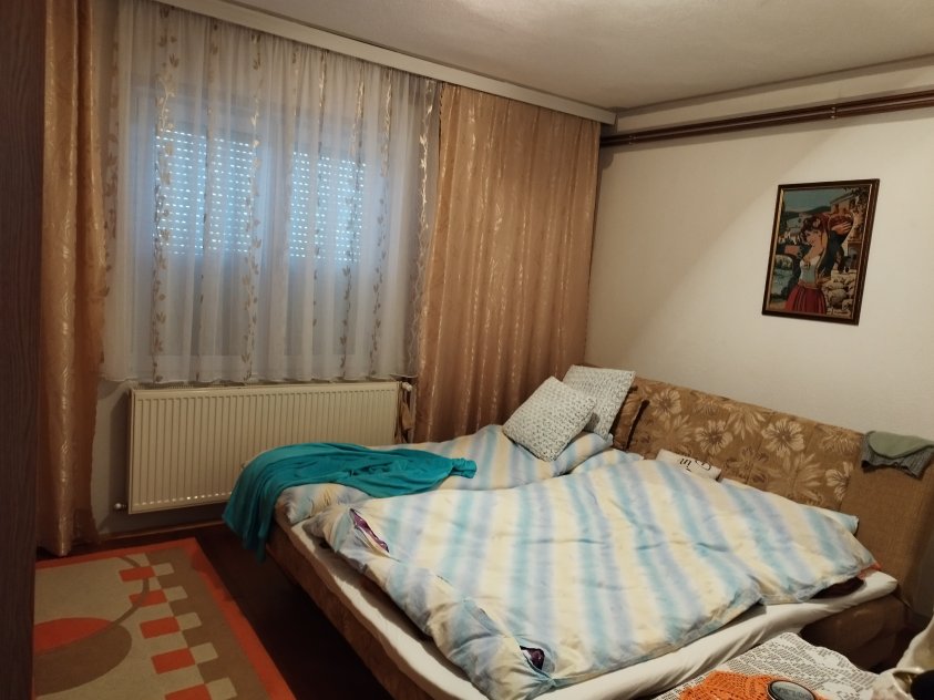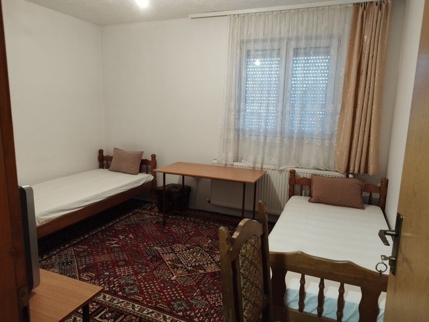 U prizemlju je veliki dnevni boravak, 2 sobe, 2 kupatila, a na spratu je 6 soba, kuhinja i kupatilo. Na kući su dva vanjska ulaza, garaža, centralno grijanje na čvrsto gorivo....Pogodna za izdavanje.