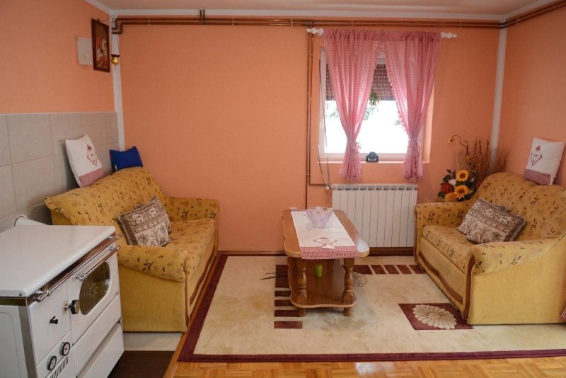 * Prostran dnevni boravak sa kuhinjom i kaminom