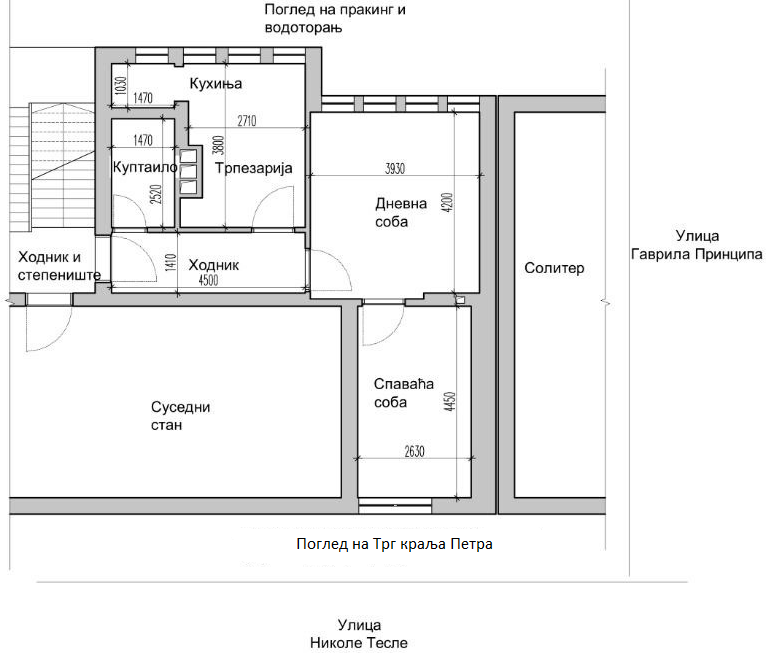 Стан 48м2 строги центар града са погледом на трг,