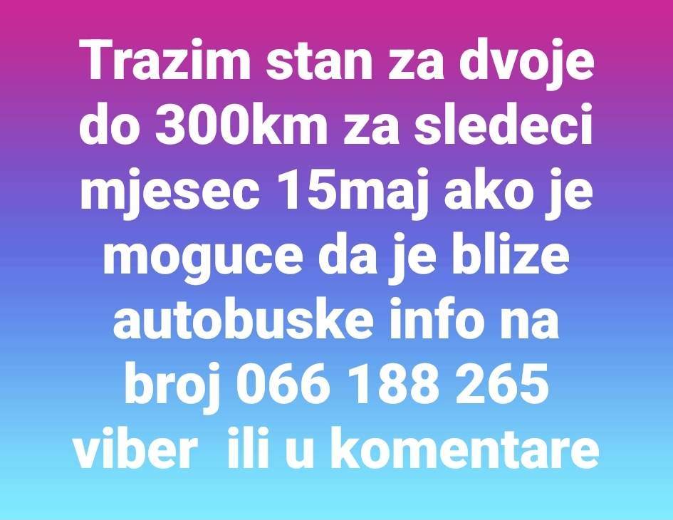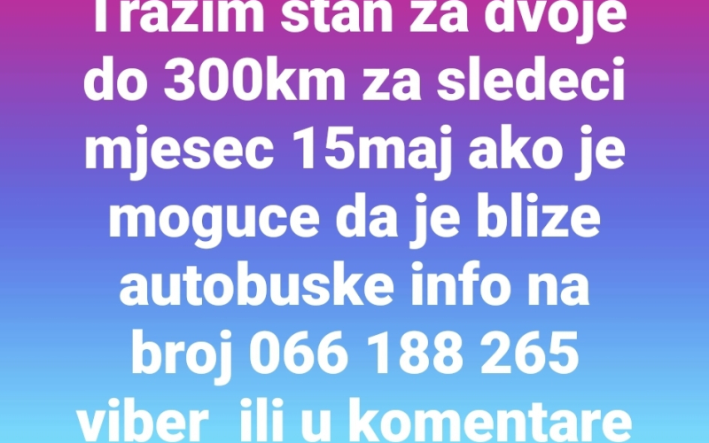 Trazim stan za dvoje do 300km blize autobuske