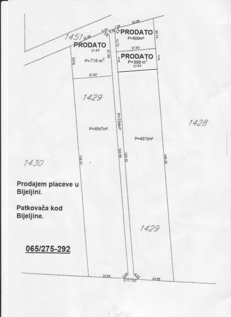 Dimenzije placeva od 500 m² okvirno, 19x26metara.