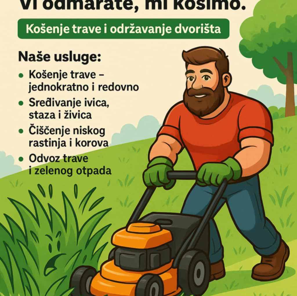 Ako vam dvorište ili imanje treba malo pažnje i ljubavi, mi smo tu da pomognemo! Nudimo usluge košenja i održavanja dvorišta, kao i čišćenje zaraslih površina. Bez obzira na veličinu posla, naš tim je spreman da se pobrine za sve.