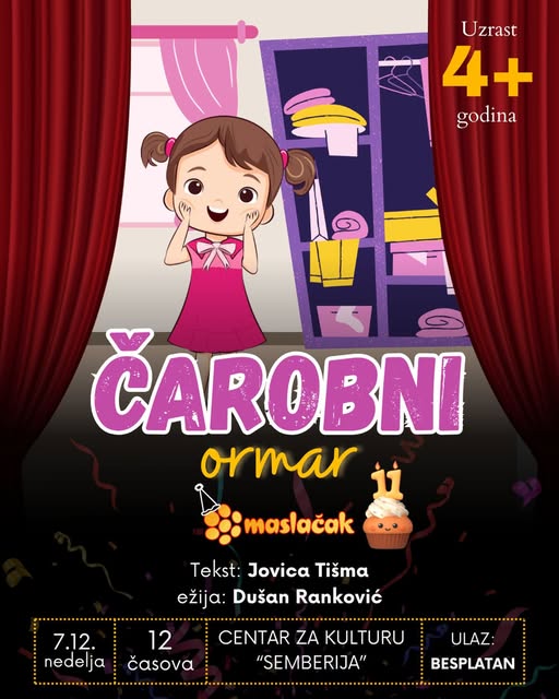 Predstava "Čarobni ormar"- CZK "Semberija", 7.12. nedelja - 12:00h