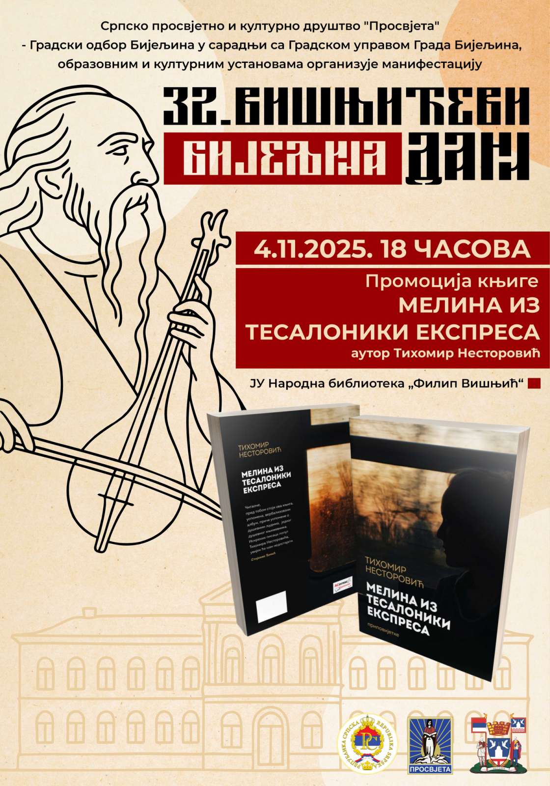 Program 32. „Višnjićevih dana“ počinje u utorak, 4. novembra, promocijom knjige „Melina iz Tesaloniki ekspresa“ autora Tihomira Nestorovića, a iste večeri u velikoj sali Centra za kulturu biće održano i poetsko-guslarsko veče posvećeno Filipu Višnjiću.
