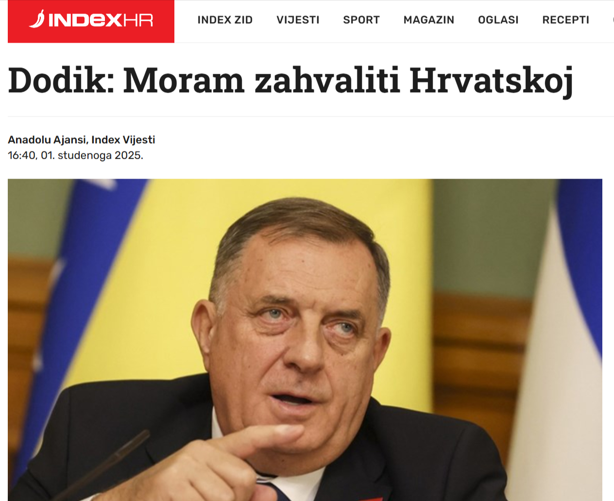 "To znači da domaći lideri, a ovdje, što je posebno važno, konstitutivni narodi, trebaju sjesti i dogovoriti se. To je nešto što se dugo nije čulo iz usta određenih američkih struktura", rekao je Dodik, a prenosi "Index".