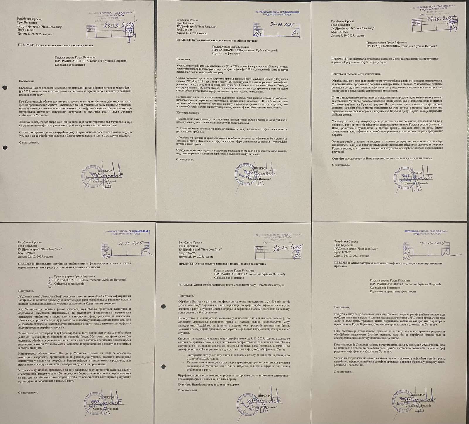 Svjesni smo da kašnjenje isplata izaziva nezadovoljstvo među radnicima, što smo Vam u više navrata pismeno saopštavali, ali zaposleni uprkos tome svakodnevno pokazuju visoku odgovornost i predanost poslu, a kvalitet rada i odnos prema djeci ostaju na visokom nivou.