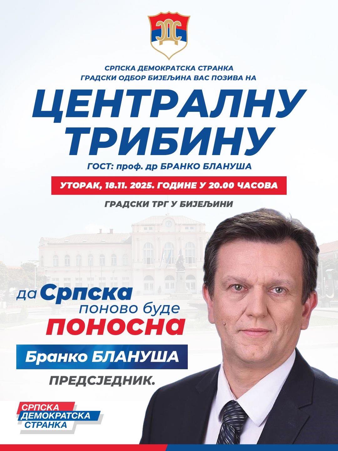 Glavni gost tribine biće prof. dr Branko Blanuša, kandidat za predsjednika Republike Srpske. TEKST SE NASTAVLJA NAKON VIDEO OGLASA