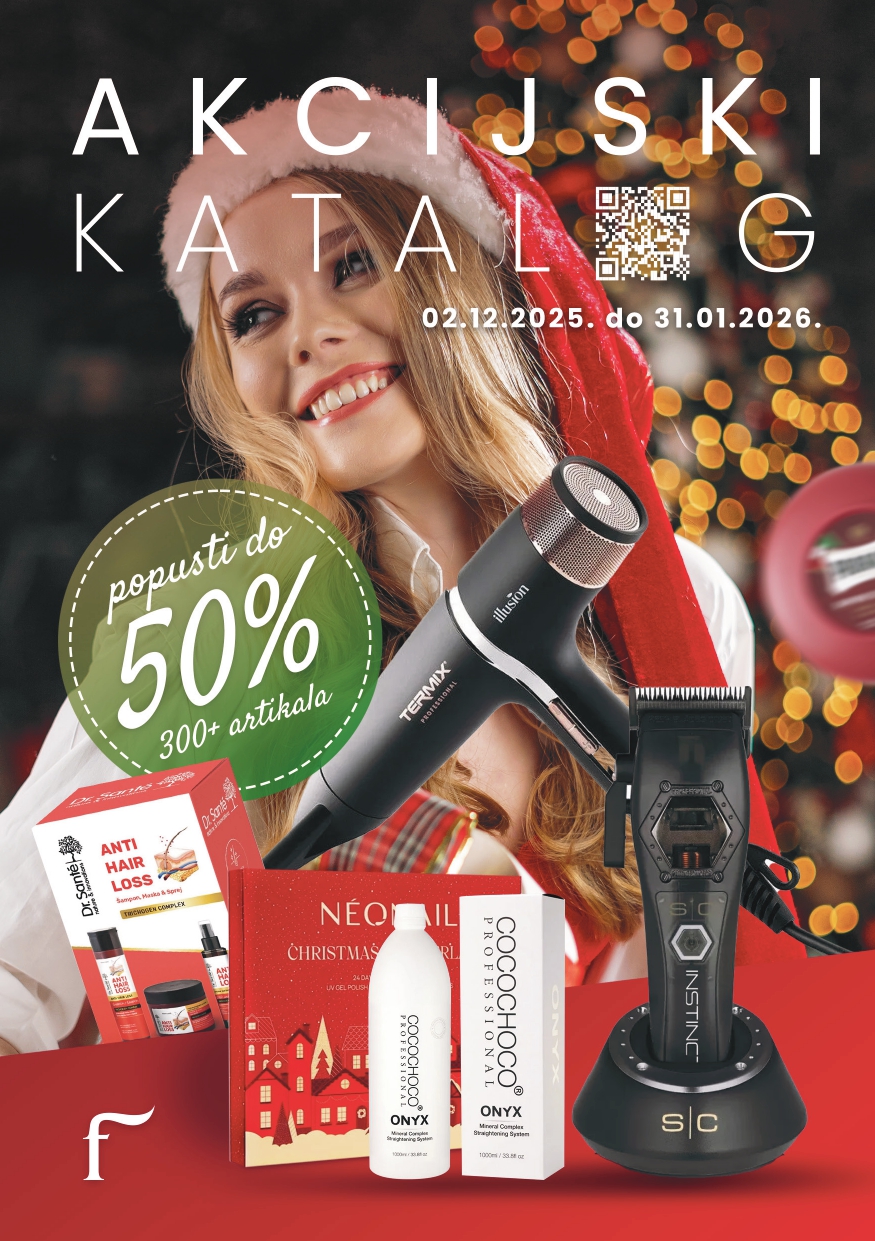 Nova Frizerland praznična ponuda trajaće od 2.12.2025. do 31.1.2026. (tokom cijelog decembra i januara). Dovoljno vremena da bez žurbe izaberete sve što vam treba – za salon, za klijente, za nove tretmane i za ulazak u novu godinu sa svježom inspiracijom.