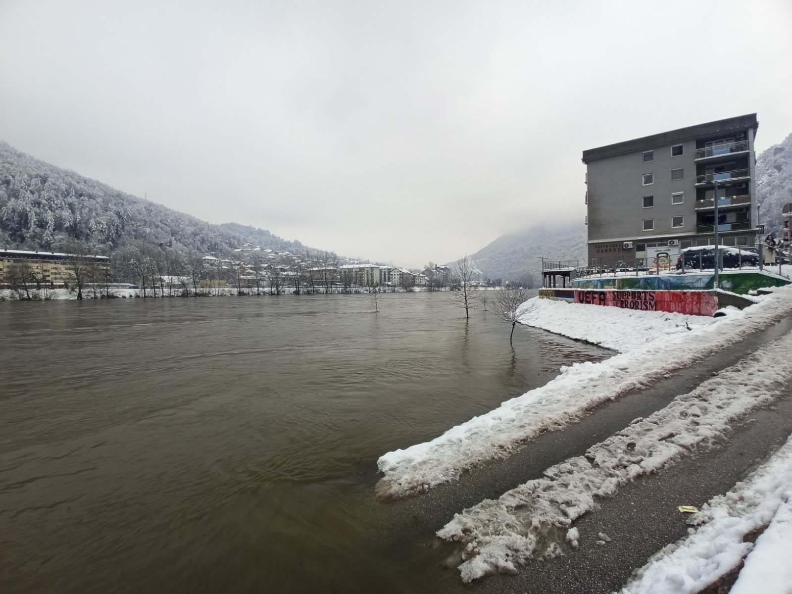 Stanovništvo u naseljima Terminal u Karakaju i Vikend naselja u Šepku obavješteno je o potencijalnoj opasnosti od izlivanja Drine iz korita, koja je poplavila Gradsku plažu u Zvorniku. TEKST SE NASTAVLJA NAKON VIDEO OGLASA