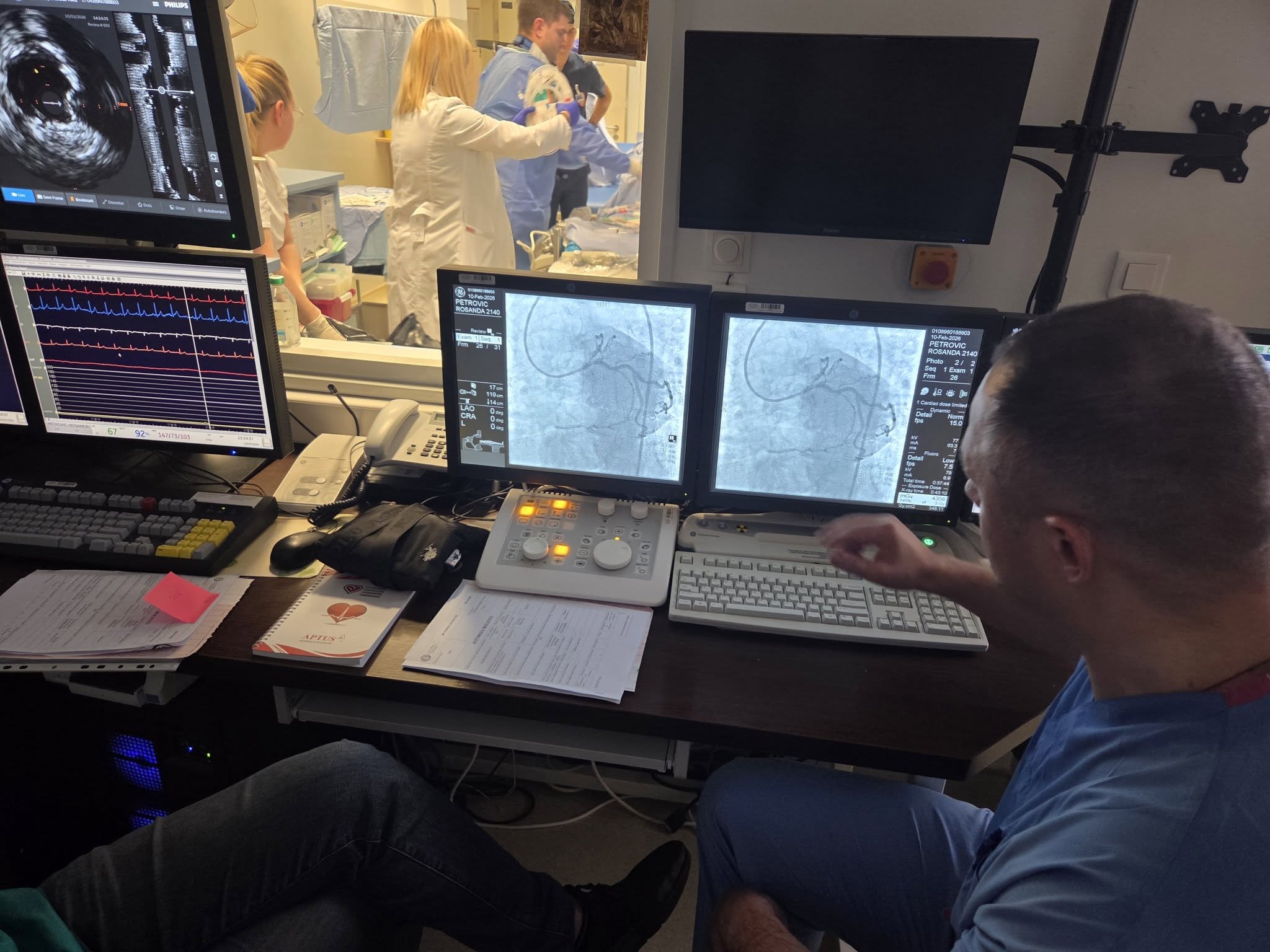 “Kod pacijentinje R.P. smo na koronarografiji verifikovali tešku trosudovnu koronarnu bolest, pri čemu je desna koronarna artrija bila potpuno zapušena. Na lijevoj strani srca, u zoni glavnog stabla, suženja su iznosila oko 90 odsto, uz izraženu kalcifikaciju.. Odlučili smo se za revaskularizaciju putem stentova. Rađena je tehnika dva stenta u glavnom stablu. Obje artrije su uspješno sanirane. U sljedećem aktu će se otvarati ova hronično zapušena arterija, objašnjava dr Janjičić.