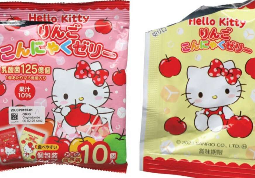 Riječ je o gumenim bombonama “helo kiti apfel konjak dželi”, pakovanje od 150 grama.