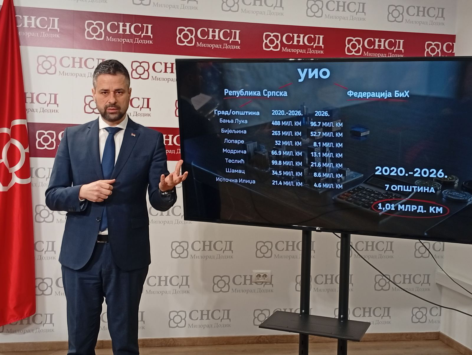 Amidžić je na konferenciji za novinare naveo opštine na čijem čelu nema SNSD, a koje su po osnovu PDV-a i akciza dobila više od milijardu KM u posljednjih šest godina.