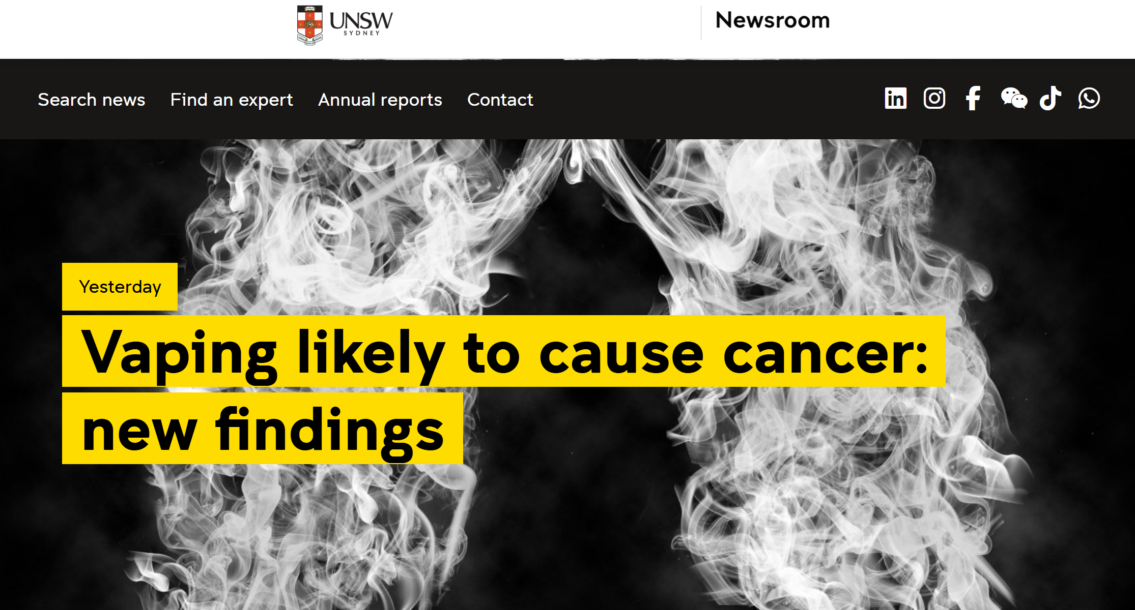 Glavni autor, vanredni profesor Fredi Sitas, istakao je da su rana upozorenja često ignorisana i upozorio da se ne ponovi ista situacija kao sa pušenjem cigareta, kada je proboj dokaza o kancerogenosti trajao decenijama.Stručnjaci napominju da vejping nije bezbjedna alternativa pušenju, posebno za mlade ljude koji nikada nisu pušili, i pozivaju na strožu regulaciju i ograničenje pristupa proizvodima za vejping.