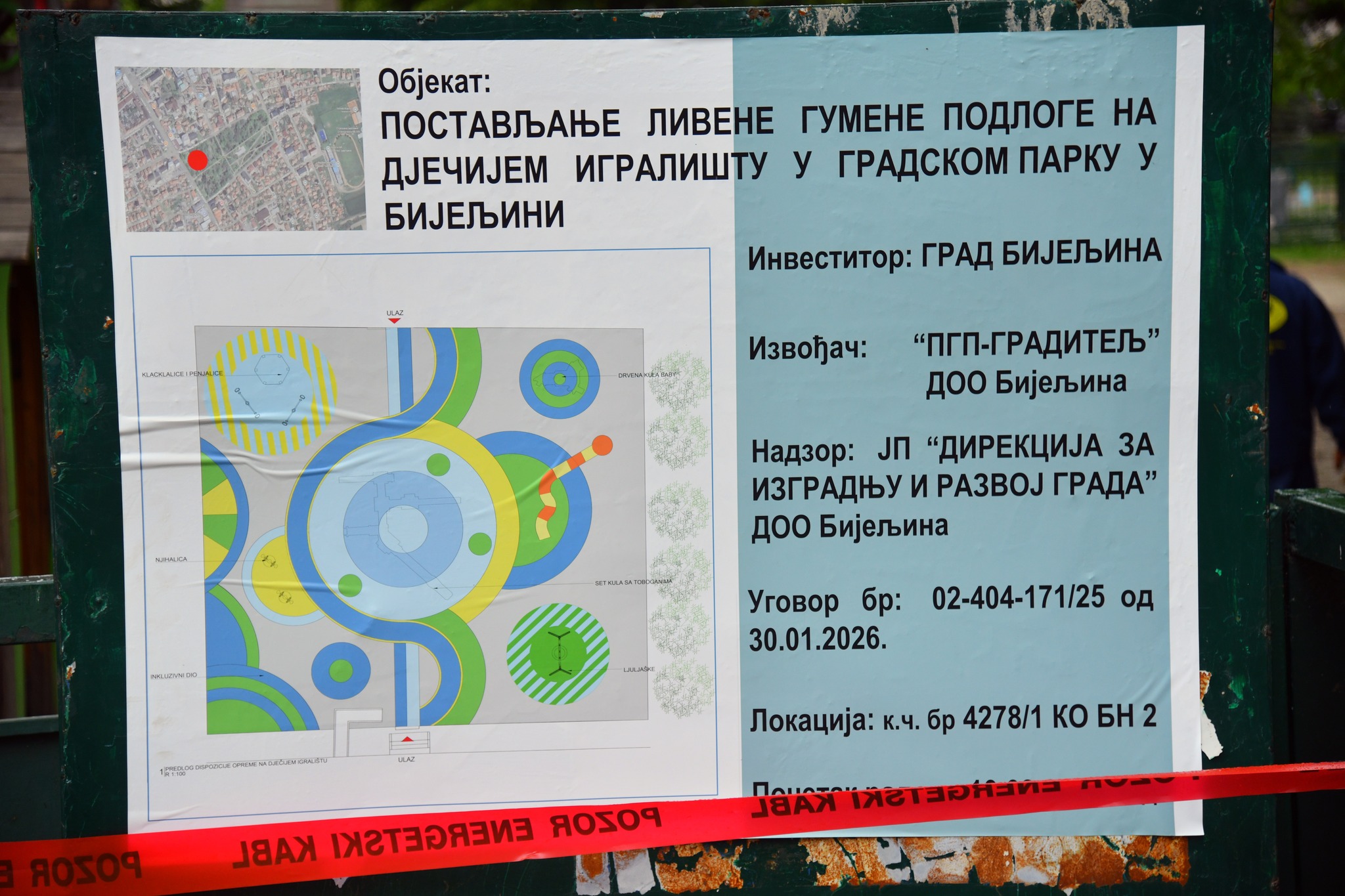 Kako je saopšteno iz Gradske uprave, u toku je postavljanje livene gumene podloge koja će omogućiti sigurnije kretanje, trčanje i igru djece. Istovremeno se vrši uređenje i sanacija postojećeg mobilijara.